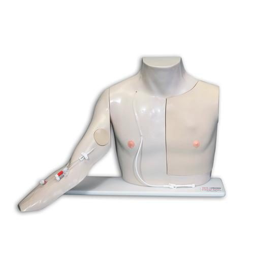 Den nye, mere avancerede arm har en dobbelt lumen 5FR-PICC (perifert indført central kateter, PICC), som kommer ud fra V. basilika - den foretrukne adgang. I området med PICC-kateteret er der et hulrum til at indsætte en perifer port (denne port er afbildet, men er ikke inkluderet i leveringen). En yderligere egenskab ved den nye arm er en 20G IV-kateter i underarmen. Den nye, mere avancerede arm har større rotation og forlængelse end den tidligere model og kan bruges til at øve rengøring, påføring af bandager og fikseringer samt til at indsætte og fjerne drop. Brystets højre side er udstyret med en kirurgisk placeret CVK (central venøs kateter). Desuden kan katetre indsættes i V. jugularis externa og i V. subclavia via de tilvejebragte åbninger. Brystets venstre side har en implanteret port. Ved hjælp af forskellige medfølgende vævsflapper kan svære indsatser øves: dybe, skrå, glidende eller vandrende porte. Chester Chest™ kan bruges i opretstående eller vandret position. Den leveres med en blodpose, talkum og brugsanvisning. Følgende artikler leveres med Chester Chest med Standard Arm: