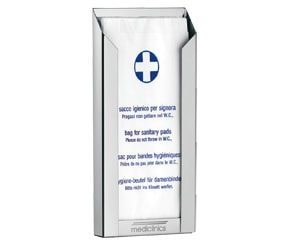 Ståloverflade med hvid epoxibelægning, vægmonteret dispenser til hygiejneposer. Kapacitet: 50 poser. Skruer og møtrikker er inkluderet.