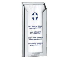 - Ståloverflade med hvid epoxibelægning, vægmonteret dispenser til hygiejneposer.