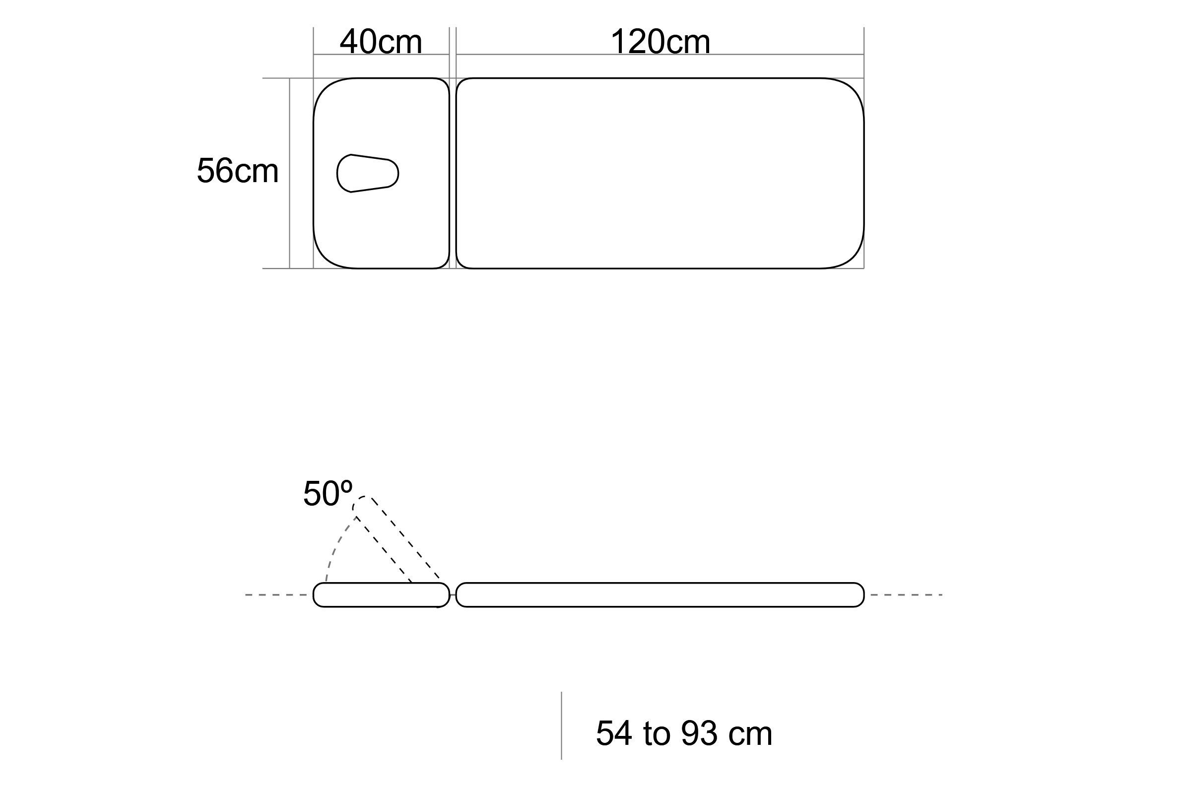 | Mål | Længde: 160 cmBredde: 56 cmHøjde: 54 til 93 cm |