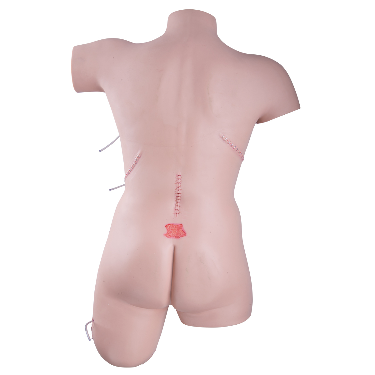 Følgende sår og drænsystemer som følge af kirurgiske indgreb og skader vises realistisk på torsoen:
