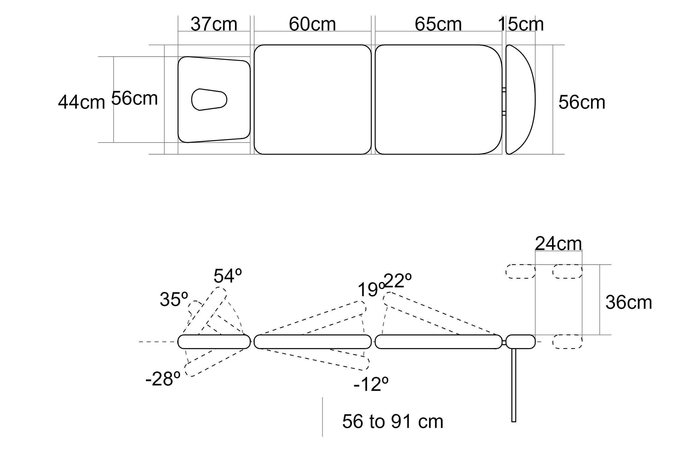 Selkänojan tyyppi | Negative pro/declive-asento |