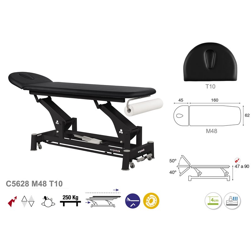 Sähköinen 2-osainen hoitopöytä paperirullapidikkeellä ja mustalla rungolla