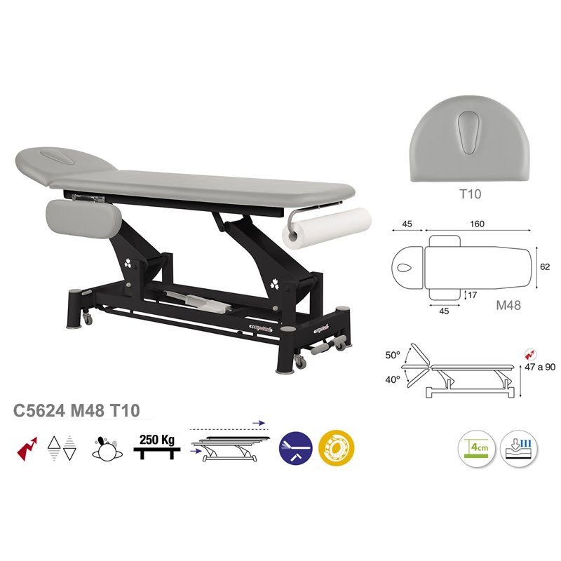 Sähköinen 2-osainen fysioterapiapenkki käsinojilla ja mustalla rungolla