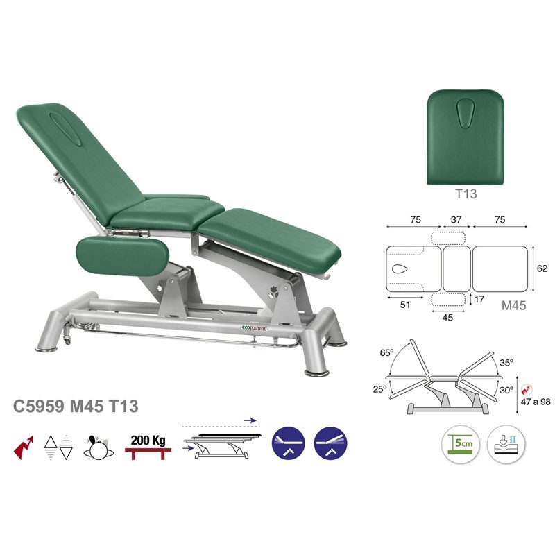 Sähköinen hoitopöytä – 3-osainen pyörillä ja käsinojilla – TwinPillar