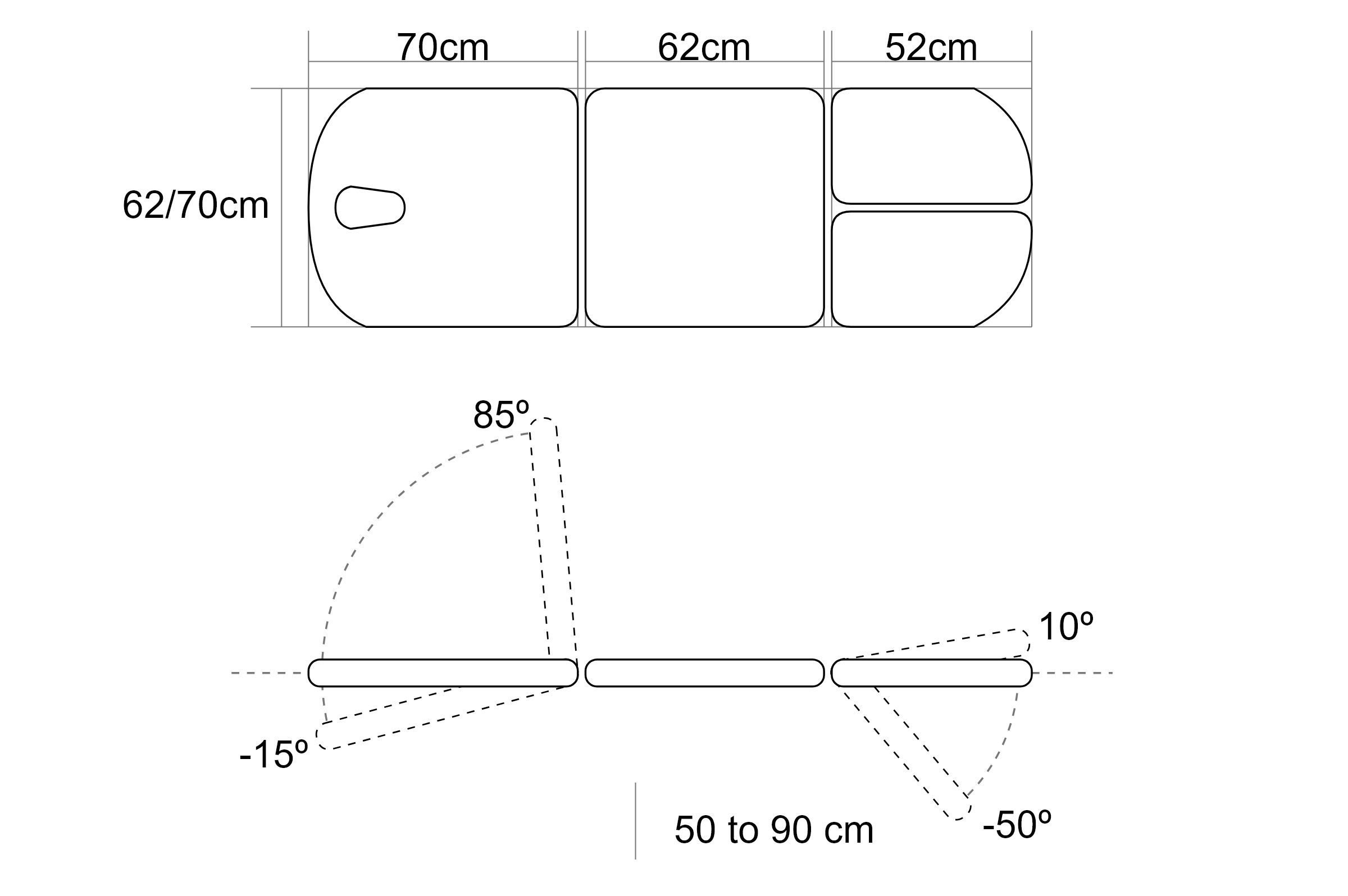 Sähköinen hoitopöytä – 3-osainen pyörillä ja käsinojilla