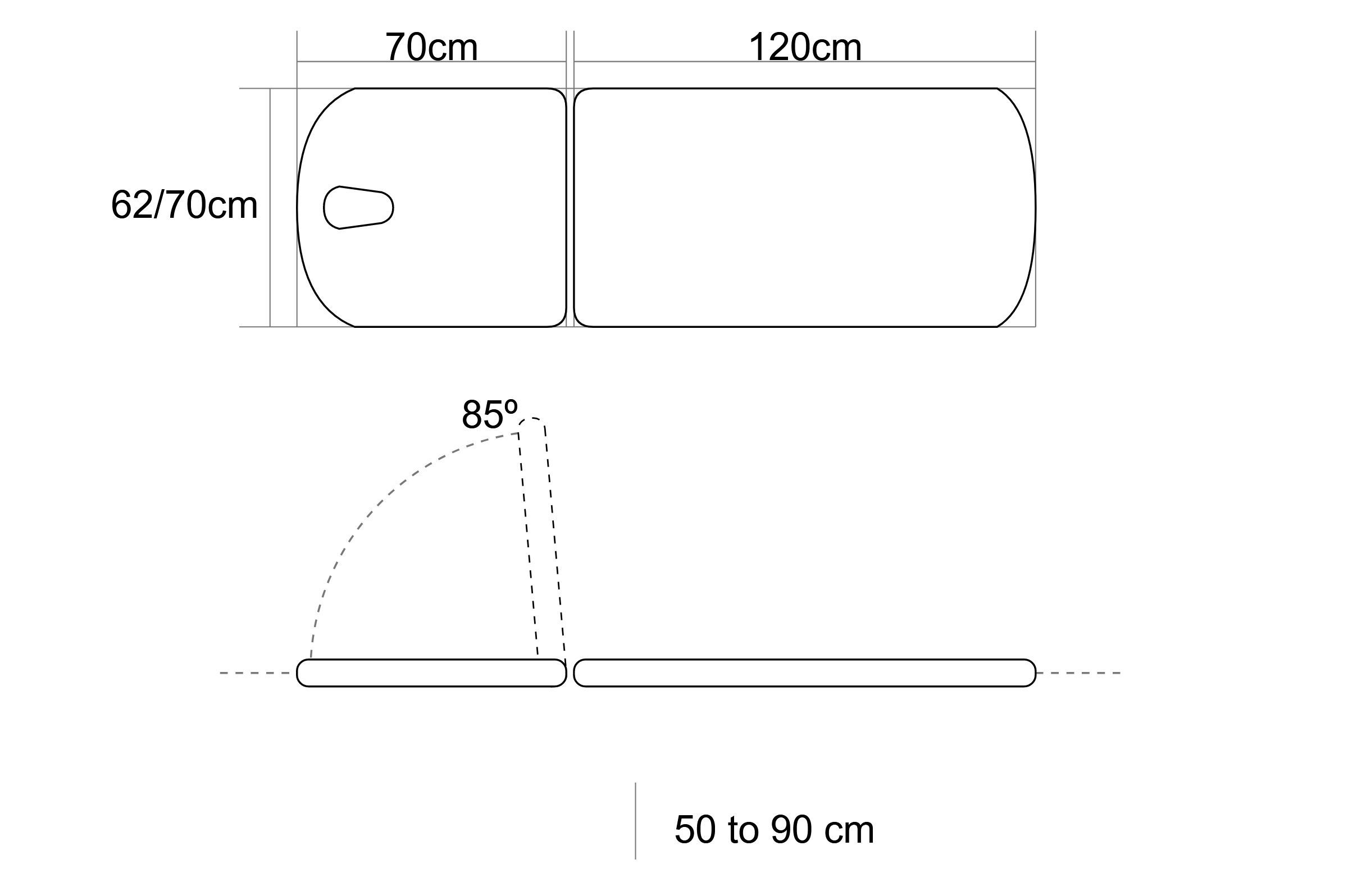 Mitat | Pituus: 190 cm Leveys: 62/70 cm Korkeus: 50 - 90 cm |