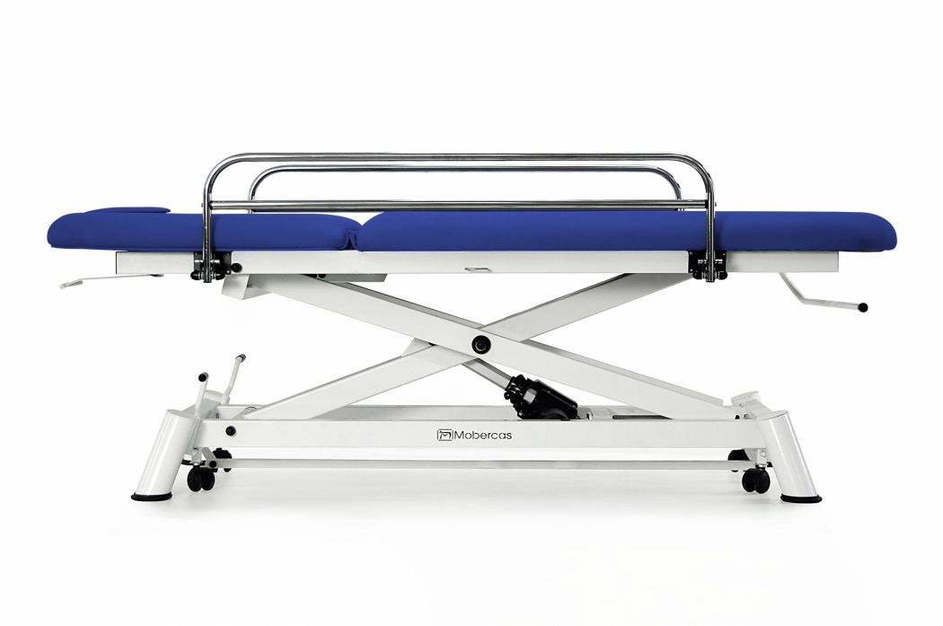 Sähköinen tutkimuspöytä, jossa on 2 osaa, pystysuuntainen korkeudensäätö ilman vaakasuoria liikkeitä, sivutuet, pidike paperirullalle, hengitysaukon tulppa ja sisäänvedettävät pyörät.