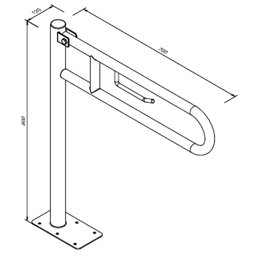 Kaatuva tukikahva jalustalla – 700 mm – Ruostumatonta terästä satiinipinnalla