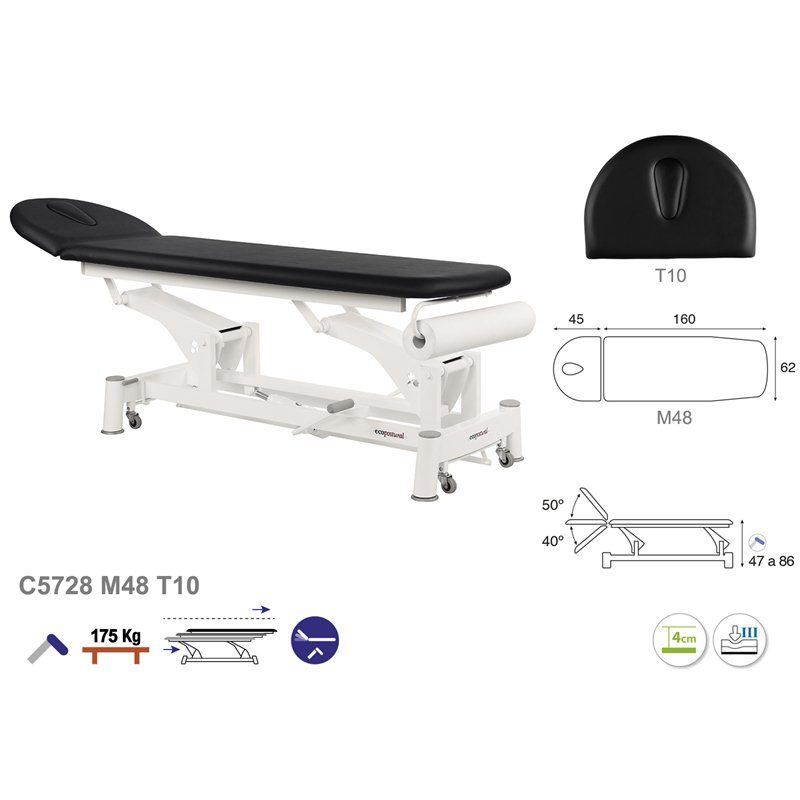 Hydraulinen hoitopöytä – 2-osainen pyörillä – Puolipallon muotoinen pääntuki