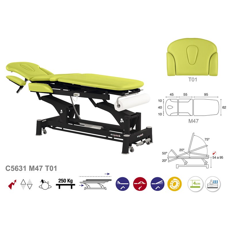 Elektrisk massage- och behandlingsbänk med armstöd och svart underrede
