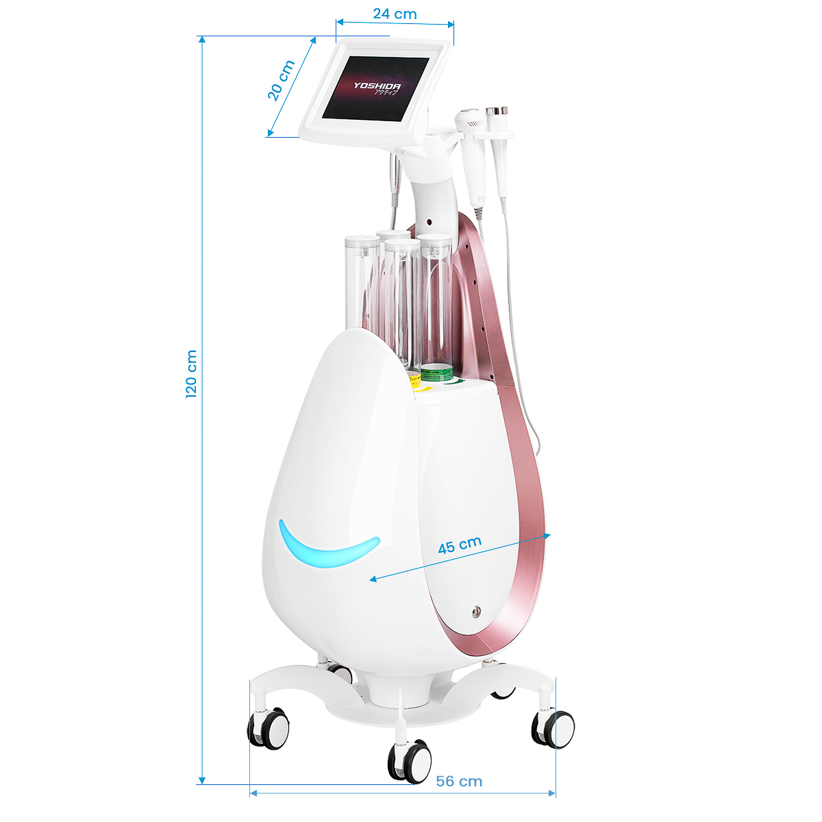 Den moderna Yoshida Lotos-apparaten kombinerar sex avancerade hudvårdsteknologier, vilket säkerställer omfattande hudrevitalisering. Tack vare noggrant utvalda funktioner rengör, återfuktar, när och stramar den effektivt upp huden, vilket svarar på behoven hos olika hudtyper, inklusive känslig och problematisk hud. Denna multifunktionella utrustning skapades för skönhetssalonger som vill utöka sitt erbjudande med effektiva och säkra rengörings, föryngrande och regenererande behandlingar. Ergonomisk design, intuitiv pekskärm och beprövade teknologier gör att Yoshida Lotos höjer standarden för kosmetiska behandlingar, vilket ger kunderna bekväm terapi anpassad till individuella hudbehov.